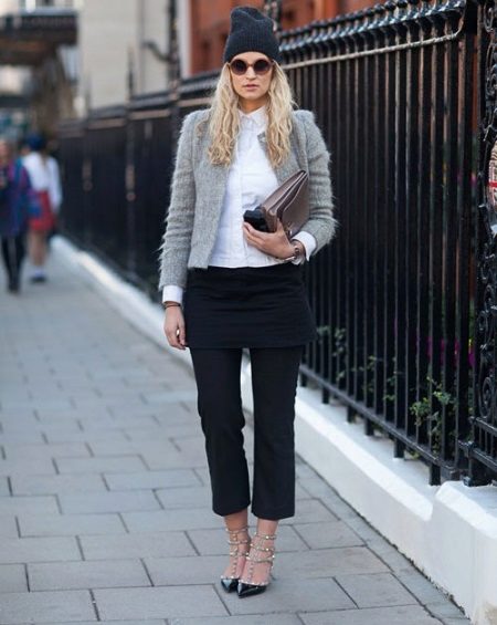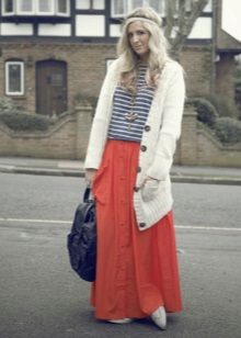 Bu sezonun en alakalı kombinasyonlarından biri bir dizi örme kazak ve uzun bir etek. Bir akşam kıyafeti ve günlük yaşam için bir kit olabilir.