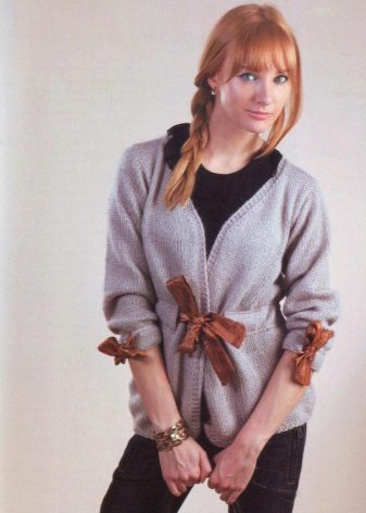 Bu sezon örme kazak koleksiyonları yaratan tasarımcılar, sadece modellerin desenine, ipliğine ve renk şemasına değil, aynı zamanda dekorlarına da dikkat ettiler. Yeni sezonda kazaklar için en popüler mücevherlerden biri saten kurdeleler. Kollar, boyunlar, sırtlık döşemesi vb.