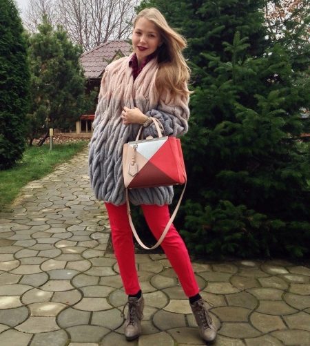Bu süs eşyaları özellikle Angora ipliği, tiftik veya ince yünden yapılmış modellerde ilginç görünüyor. Bu tür kazaklar kendi başlarına çok zarif görünüyorlar, bu yüzden onları en çok daha kısıtlanmış şeylerle birleştirin: kot pantolon, klasik düz pantolon, sıkı bir etek.