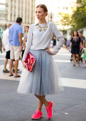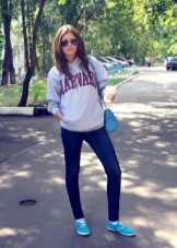 Şık baskılı spor ayakkabılar, daha büyük bir etki için saklanması önerilen parlak gevşek bir kazak ve skinny jean ile bir kombinasyon için yalvarır. Genç moda tutkunları, üst ve alt renk şemasının birbirleri için uygun olması gerektiğini dikkate almalıdır. Aksi takdirde, görüntü tatsız ve iğrenç görünecektir.