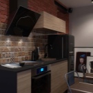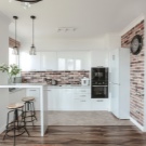 - Duvarı uzun beyaz fayanslarla süsleyerek çalışma alanını vurgulama.