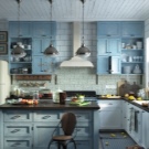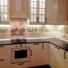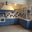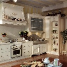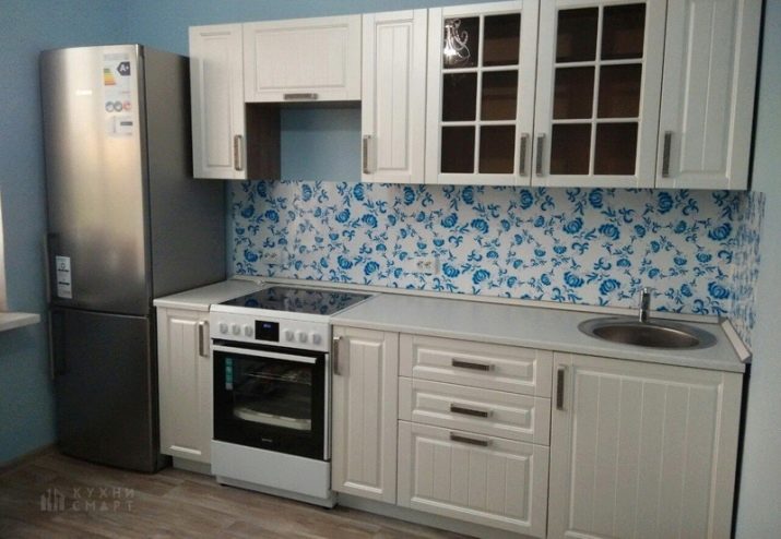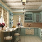 Provence tarzı mutfağı veya sözde Fransız ülkesi mutfağı, pastel renklerin serin tonlarına eğilim gösterir. Bu durumda, öncelik beyazdır. Tasarımda çok az tekstil varsa, önlüğü sadece sembolik bir desenle değil dekoratif bir panelle dekore edebilirsiniz. Kaplama bileşimini yerleştirmek için sobaya daha uygundur.