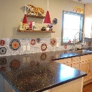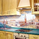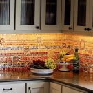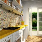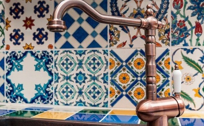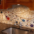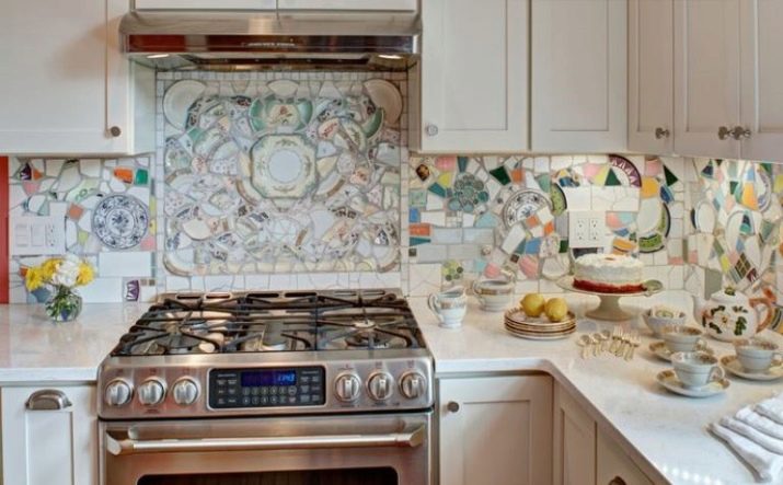 - Mutfağın çalışma alanının aksanını süslemek için mozaik kullanma.