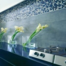 Mozaiklere gelince, bu malzeme seçim için özellikle dikkatli bir yaklaşım gerektirir. Mutfakta şık bir aksan yerine böyle bir önlüğün tasarımına dikkatsizce yaklaşırsanız, banyo panelleri yaratmaya çalışacaksınız.