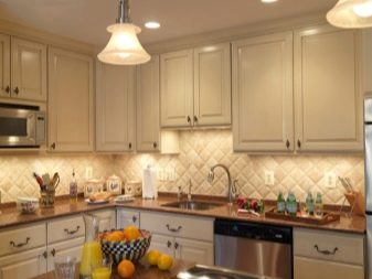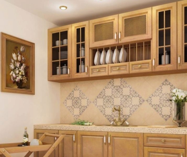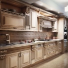 Örneğin, simetri, renk saflığı, kaplamanın tekdüzeliği, yaldız varlığı ve sıva süslemesi klasik mutfak için önemlidir. Klasik stil önlük aksanı, kaplamanın ortasında bulunabilir. Müşteri tercihlerine bağlı olarak, döşeme ile yazdırın. Bu süslü monogramlar, orijinal bir dövülmüş geometrik desen ve mozaik karolarla tamamlanan küçük bir panel şeklinde bir vurgu olabilir. Duvar, geleneksel veya çapraz olabilir.
