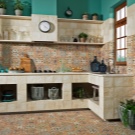 Aynı zamanda, karo kaplamasının rengi beyaz veya normal tuğla veya gri olabilir. Doku doğal malzemelere mümkün olduğunca yakın olmalıdır (pürüzlü yüzey tipi, donukluk, küçük rahatlama). Burada tipik bir tarz atmosferinden uzaklaşacağı için parlak bir şeye ihtiyaç yoktur.