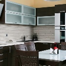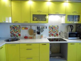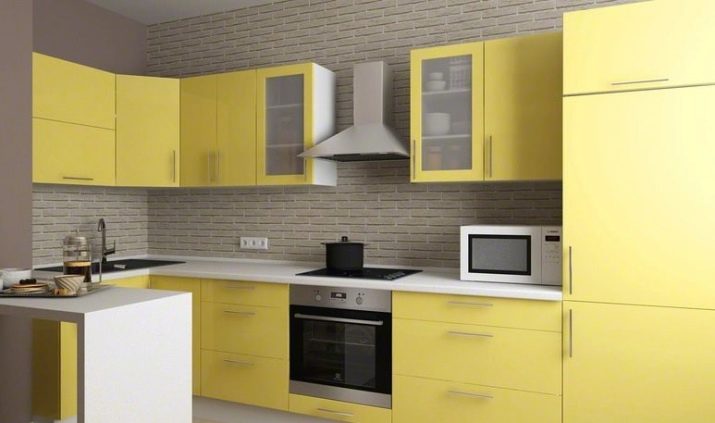 Çok renkli fayanslar genellikle asılı çekmecelerin ve zemin dolaplarının düz cephelerinin aksine kullanılır. Aksi takdirde, ifadeyi kaybeder. Mutfakta dinamik bir atmosfer yaratmaya karar verirseniz, öğelerin parlak renklerine dikkat edebilirsiniz. Örneğin, portakal, limon, yeşil, sarı renk mutfakta güzel görünüyor. Daha cesur kararlar almak istiyorsanız, gri kontrastla birlikte bir şarap tonu seçin.