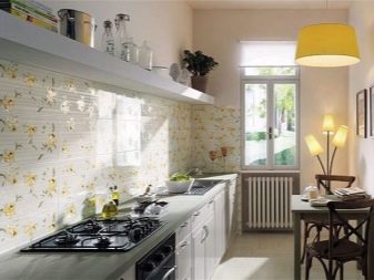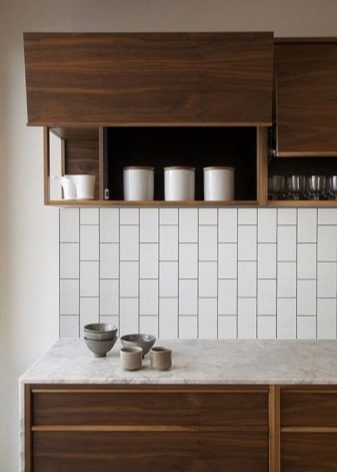 - Fayansları bir ofset veya aralık ile döşemek, klasik bir mutfağın içine başarıyla sığar.