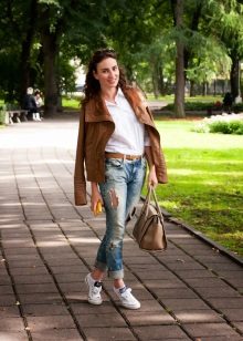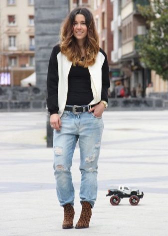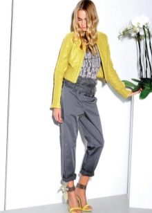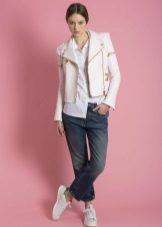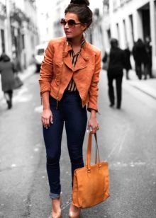 Kural olarak, kısaltılmış manşonlu ceketler keçe, süet, kot veya kalın pamuktan dikilir. Bu nedenle, topluluğun geri kalanını açıklanan ceket modeliyle derlerken, şeylerin dokusunun seçimine dikkatlice yaklaşmalısınız. Bu modeller için iki ana yasak vardır: