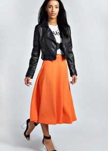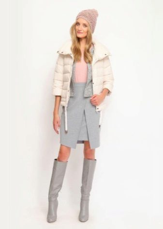Etekli bir topluluk seçerken, görünüşte dengesizlik oluşturmayan kombinasyonları seçmelisiniz. Ceketin uzunluğu uyluğun ortasından daha düşük olmadığından, eteğin stili onunla “birleşmemelidir”. Hacimli bir ceket giymek, ona düz bir etek ve tercihen bir kalem modeli alın. Aksine, stil eteğiniz bir güneş veya çan ise, o zaman takılmış bir ceket veya aşırı durumlarda bir bombacı ceket modeli giymek daha iyidir.