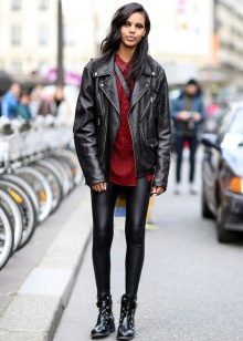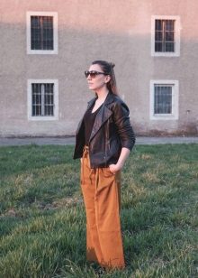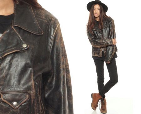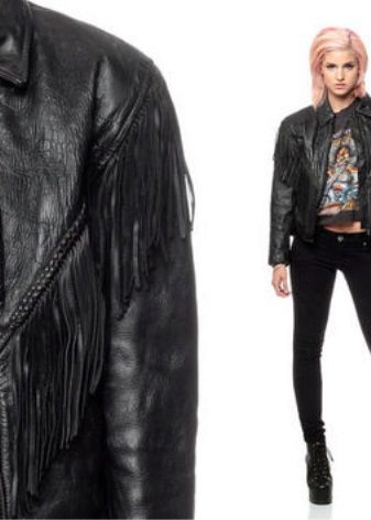 Ayrıca, bisikletçinin ceketlerini andıran ceketler bufalo derisinden dikilir. - asimetrik fermuarlı ve çok sayıda metal takı, toka ve çıta ile kısaltılmış modeller.