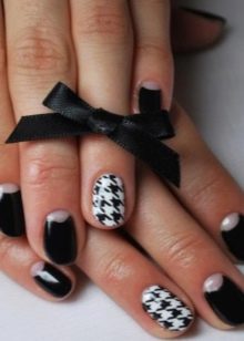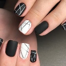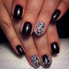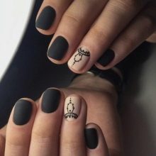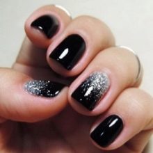 Siyah manikür, tek renkte tırnakların karakteristik tam rengi ile sadece klasik tasarımı değil, temel olarak yapılabilir. Bugün, kısa tırnak plakalarının uzunluğunun eksikliğini başarılı bir şekilde yenebileceğiniz kombine çözümler daha popülerdir. Örneğin, Fransız manikürünü ve klasiklerini, bir peçe ve bir ceket, bir ters ceket ve plakanın bir kısmının sadece şeffaf malzeme ile kaplandığı negatif bir boşluk tekniğini birleştirebilirsiniz.