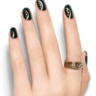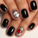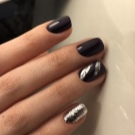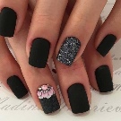 Tırnak modasının önceliklerinden biri mevsimsellik haline geldi. Tabii ki, siyah jel cilası temel olarak uygulamak o kadar kolay değildir. Bununla birlikte, dekoratif elemanlar kullanılabilir. Örneğin, Yeni Yıl tatillerinin yaklaşımını gösterecek vurgu tırnaklarına holografik kar taneleri yapıştırabilirsiniz. Kış temasını vurgulamak isterseniz, gümüş akrilik şeker kullanarak ve onunla alışılmadık bir ceket görünümü yaratarak tasarımdaki kar tozunun etkisini tasvir edebilirsiniz.