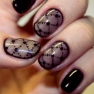 Peçe, yarı saydam bir vernik uygulanan bir tekniktir ve genellikle kontur darbesinaylon çorabın etkisini yaratmanızı sağlar. Bu durumda, böyle bir arka plana karşı, hem siyah hem de diğer renklerde çeşitli desenler oluşturabilirsiniz. Akrilik toz yardımıyla oluşturulan dikey bir degrade şeridi böyle bir temelde mega-güzel görünüyor.