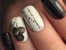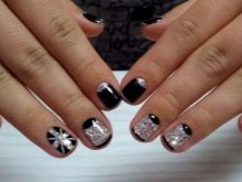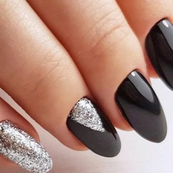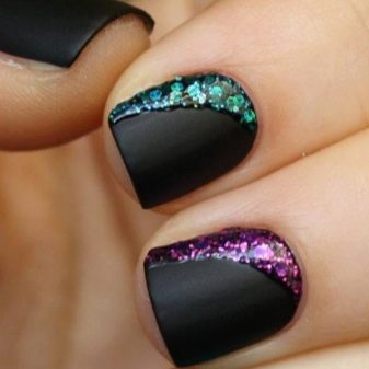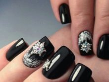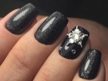 Zarif ve şık siyah manikür, payetler ve çeşitli rhinestones ile tamamlanması kolaydır. Bugün böyle bir tasarım kendi kendine yeten kızlar, iş bayanlar ve muhteşem güzelliklerle ilişkilidir. Bu tür bir tasarım, hem kısa hem de uzun tırnaklar için mükemmeldir, ayrıca mücevher ve moda aksesuarları ile birleştirilebilir.