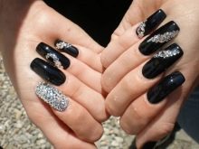 En popüler trendlerden biri, garip bir şekilde, iyi eski klasik: parıltı ve rhinestones olan siyah manikür. Neden? Çünkü böyle bir evrensel manikür "özne" ve top ve günlük yaşamda. Ana şey, size hitap edecek sıra dışı bir tasarım seçeneği seçmektir. Zevkle giyeceğiniz bu tırnak tasarımı, yorulmayacağınız.