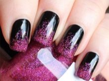 Parlak siyah manikür, manikürün kesintisiz bir tatil versiyonudur. Parlaklık ile deney yapabilirsiniz: ceketi kenara, ceketi alternatif olarak veya tersine çivinin deliğine uygulayın. Hangi seçeneğin size daha yakın olduğunu seçin, yeni bir seçenek denemekten korkmayın.