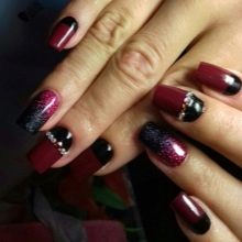 Kırmızı ve siyah renklerin kombinasyonu bazı paniklere neden olurken, diğerleri - hayranlık. Kendinizi son kişi kategorisiyle ilişkilendirebiliyorsanız, siyah bir manikür yapın ve kırmızı parıltılarla süsleyin. Etkili kombinasyonlar ve gelmiyor. Siyah ve kırmızı ceket, spot ışığında olmak isteyenler için başka bir seçenektir.