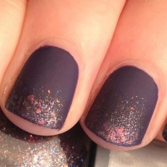 Siyah mat manikür şimdi çok popüler: pahalı, şık, zarif ve ölçülü görünüyor. Tırnak sanatını sevmiyorsanız, ihtiyacınız olan şey mat bir üsttür. Vurgu çivisine, bu arada, parlaklıkla kaplanabilen bir kadınlık ve olağandışı parlaklık veya rhinestones dokunuşu ekleyebilirsiniz. Bu kombinasyon her zaman eğilimdedir.
