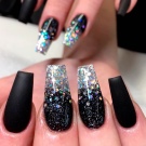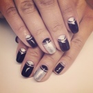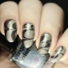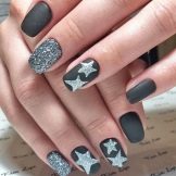 Siyah ve gümüş manikür ile renklerin gerilmesi harika görünüyor - tırnak tasarımı alanında tamamen yeni bir fenomen. Gümüş kullanırken, yıldızlar kara gökyüzüne düşüyor gibi görünüyor.