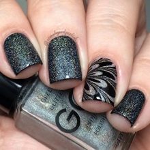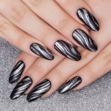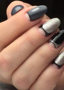 Tasarımda sadece iki renk olmasına rağmen, siyah ve gümüş bir manikürü muhteşem yapabilirsiniz. Sıkıcı görüntüyü seyreltir, kıyafeti daha şenlikli yapar. Moda dergilerinde her zaman yeni seçenekler ortaya çıkıyor, bu iki rengin güzelce nasıl birleştirileceği. Özellikle popüler tırnak sanatıdır.