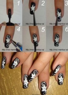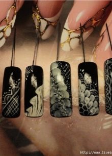 Çivilere orijinal çizimler uygulama deneyimi olmayanlar su teknolojisini kullanmalıdır. Bu, siyah vernik ilk önce küçük bir su kabına damlatıldığında, daha sonra basit bir kürdan ile yetiştirilir, daha sonra gümüş içine damlatılır ve tekrar aynı aletle yüzeyde bir desen oluşturulur. Resmi uygulamak için, parmaklarınızı birbiri ardına suya batırmanız ve çiviyi vernik altında kaldırmanız gerekir, böylece çivi üzerinde basit bir çizim uzanır.