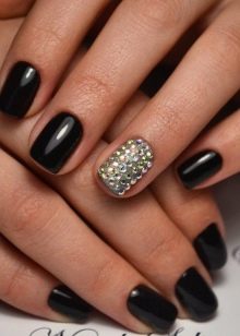 Siyahın kendisinin çok kendi kendine yeterli olduğunu hatırlamakta fayda var, bu yüzden çok fazla dekoratif unsur her şeyi mahvedebilir. Rhinestones ve pırıltılar, rengin derinliğini vurgulamak ve kendilerine dikkat çekmek için tasarlanmıştır. Böyle bir vakfın çok karamsar olduğu ve bir şey yanlış yapılırsa, neredeyse her zaman kazanan bir kompozisyonun böyle olmayacağı unutulmamalıdır.
