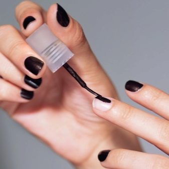 Uzmanlar, siyah verniğin kötü bir özelliğe sahip olduğunu hatırlatır - tırnak plağına emilir ve lekelenir. Bu nedenle koyu vernik uygulamak için bir ön koşul, temel şeffaf bir kaplamanın kullanılmasıdır.