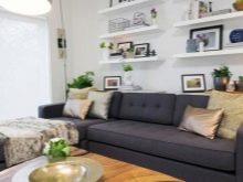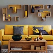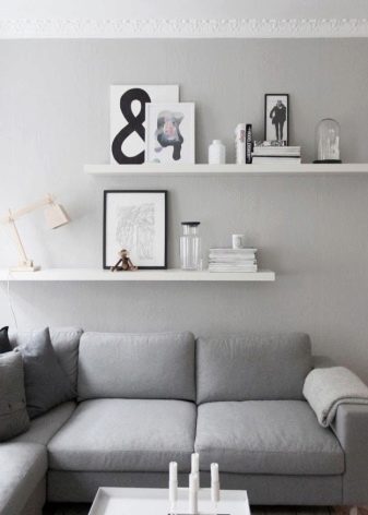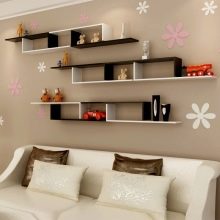Bugün, özellikle odaların iç kısmını dönüştürebileceğiniz birçok tasarım fikri var, özellikle bu, oturma odası ve yatak odası tasarımı ile ilgilidir. Çoğu zaman, kanepenin üzerindeki raflar iç mekana ek olarak kullanılır. Bunlar aşağıdaki gibi monte edilebilir.