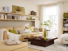 - Modern oturma odası. Bu odada, çok katmanlı süspansiyon yapıları yardımıyla yatay bölümleme yapılabilir. Olağandışı bir etki elde etmek için, duvarın üst ve altının farklı tonlarda bitirilmesi önerilir. Raflar en iyi kuru duvardan kendi başlarına yapılır ve cam ekler ile tamamlanır. Yapının tepesinde, iç mekan bitkileri güzelce uyacak ve aşağıda küçük dekor öğeleri (figürinler, fotoğraflar, şamdanlar) düzenleyebilirsiniz.
