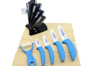Bu seramik bıçak seti, çok yönlülüğü vurgulayan dört bıçak (3 ”, 4”, 5 ”ve 6”) içerir. Her ürünün zirkonyum oksit ile kaplanmış keskin bir bıçağı vardır. Kompozisyon pas ve bakterilere karşı dayanıklıdır.