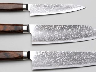 Şam desenli bıçakların güzel örnekleri Shikegi Tanaka tarafından Santoku 3D veya Santoku Wa'dır.