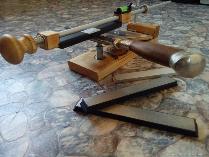 Rus cihazları arasında, sıradan öğütme ayırt edilebilir elmas blokları. Ürünler kapaklar halinde teslim edilir, cihazın fiyatı 450-750 ruble arasında değişir. Her çubuğa kullanım talimatları eşlik eder. Ürünün tabanı alüminyumdan yapılmıştır. Malzeme tüketimi minimumdur.Sahipler kalemtıraşın kullanım kolaylığına, mutfak ve av bıçaklarını, tehlikeli tıraş makinelerini düzenleme ve keskinleştirme yeteneğine dikkat çekiyor. Cihazın yüzeyini çizmezler.