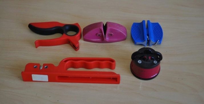 Bu aletler sadece mutfak bıçaklarının bıçağını keskinleştirmek için değil, aynı zamanda makas, orak ve diğer ekipmanları kesme kenarı ile öğütebilir.
