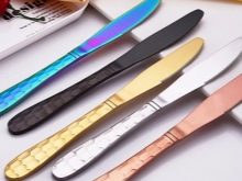 Yaygın olarak kullanılan paslanmaz çelik bıçaklar. Günlük kullanım için uygun olan en dayanıklı kullanımdır. Bu tür ürünler pastan korunur, dayanıklı, sıcaklık değişikliklerine dayanıklıdır, ürünler üzerinde bir şaplak bırakmaz, uzun süreli kullanımda bile görünüm parlak kalır. Bununla birlikte, bu tür bıçakların dezavantajları vardır. Ana dezavantaj hızlı matlaşmaktır.