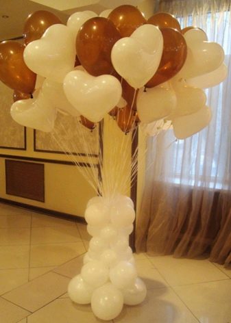 Ayrıca en çeşitli top formunu da seçebilirsiniz, örneğin, kalp şeklinde bir balon çeşmesi sevginizi sembolize edecektir. Kompozisyona, bir tüpe sarılmış birkaç banknot koymanın güzel olacağı bir sürpriz top da ekleyebilirsiniz. Sevgili bazı gerekli ve önemli kazanımlara para harcayabilecektir.