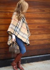 Daha önce de belirtildiği gibi, panço, diğer giyim unsurlarıyla birlikte sorun yaratmayan evrensel bir çocuk gardırop öğesidir. Kız panço altında kot pantolon veya yumuşak kadife pantolon giyebilir ve taytlı şortlar da uyumlu görünür. Uzun bir model altında tozluk veya tozluk uygun olacaktır. Daha hassas bir görünüm için, yoğun malzemeden yapılmış düz bir etek seçin (örneğin, denim). Üst kısım için bir balıkçı yaka veya kazak seçin.