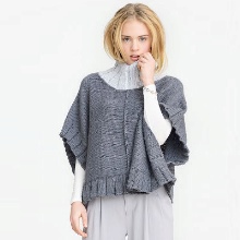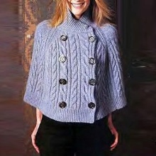 Bir başka şık görünüm, örme parlak pembe renkteki bir yaka yakalı bir panço kolsuz ceket. Modelin en önemli özelliği, büyük örgülü örgüler ve büyük siyah düğmeler biçimindeki dekor.Panço, kalçalarda cepli modaya uygun gri pantolonlar, daha açık gri tonunda mokasenler (yine, pembenin pembe ile kazan-kazan kombinasyonu) ve aynı renk eldivenlerle doğru bir şekilde tamamlanmaktadır. Daha sakin bir pembe tonu ve aynı çerçeve bir çanta da orijinal kolsuz cekete uyar.