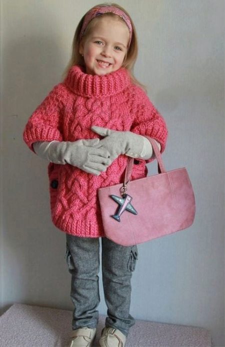 Bu kıyafet çocuk için özellikle uygundur, çünkü hareketlerini kısıtlamaz, rüzgardan güvenilir koruma sağlar, ancak aynı zamanda kesimin özellikleri nedeniyle, aşırı ısınmaya izin vermez, çocuklar için çok tehlikelidir. Geniş bir stil ve renk yelpazesi, kızın gardırobuna çeşitlilik katacaktır. Panço bir demi sezonu: kızınız hem serin bir yaz akşamında hem de kış yürüyüşünde giyebilecek.