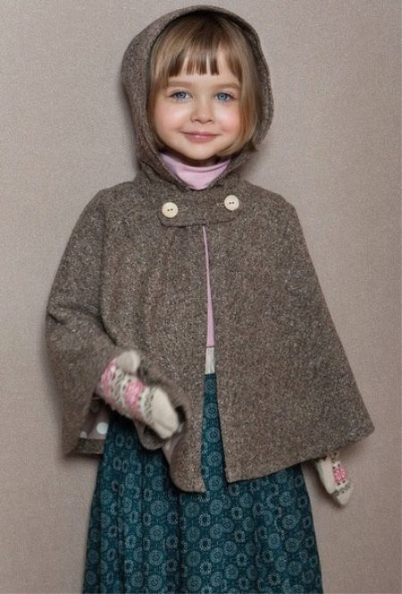 Sonbahar için mevcut model, orijinal bir pelerin şeklinde bir ceket veya cekettir. Bu tür çocuk modelleri genellikle daha pratik ve sıcak hale getiren bir başlık ile donatılmıştır.