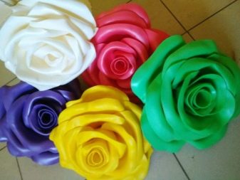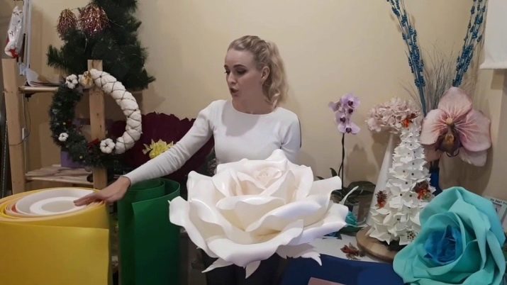 Malzemenin boyutuna, renklerine bağlı olarak farklı olasılıkları göz önüne alındığında, seçim yaparken dikkat çekmeye değer: yaratıcılık için en iyi malzeme geniş bir izolon metre olarak kabul edilir. Bu tür ürünlerden, çapı 1 metreye kadar büyüme çiçekleri yapabilirsiniz. Bir buçuk metre genişliğinde yuvarlanmış bir analog, 2 m'ye kadar çapa sahip çiçekler yaratmanıza izin verir. Bununla birlikte, daha yoğun bir hammaddeden yapılmışsa, böyle bir çiçeğin şekli daha iyi korunacaktır.