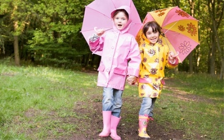 Yağmurluk yerine parka, ceket veya rüzgarlık kullanılabilir. Yağmurlu havalarda bir çocuk yürüyüşü planlıyorsanız, botları kot pantolon veya tulumlarla birleştirmek en iyisidir. Böylece, çocuk onun yolda karşılaştığı tüm su birikintilerinden geçse bile, çocukların bacaklarının kuru kalacağına ikna olabilirsiniz.