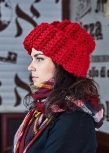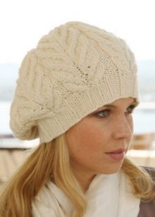 Tığ hacimli file desenleri de popülerdir. Headdress'in şık bir aksesuar rolü oynadığı sonbahar-ilkbahar dönemi için daha uygundurlar. Stilistler, diğerleri gibi hacimli bir bere takmayı tavsiye eder - hafifçe bir tarafa hareket ettirerek ve altından patlama serbest bırakır.