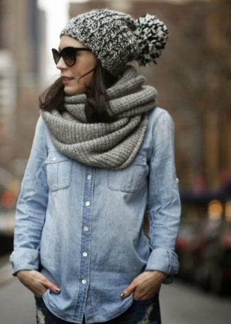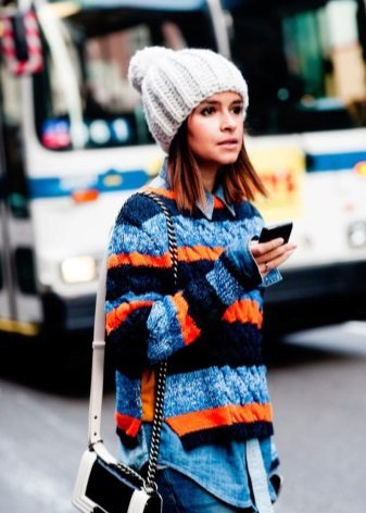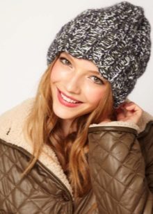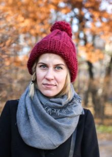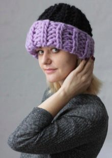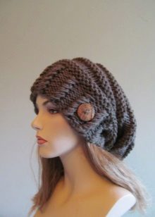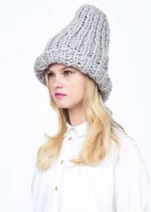 Hacimli çorap başlığı oldukça uzundur, bu nedenle iki şekilde giyilebilir: yaka ile ve yaka olmadan. Böyle bir şapka çok işlevsel olarak kabul edilir.