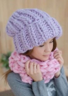 Yeni başlayanların bile idare edebildiği laconic şal örgü, büyük talep görüyor. Genç kızlar, ürüne daha büyük bir hacim veren enine örgüye sahip güzel bir şapka ile harika görünecekler.