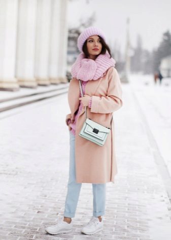 Kalın bir örgü şapka için dış giyim seçerken, en kısıtlanmış, özlü stilleri seçmek daha iyidir.