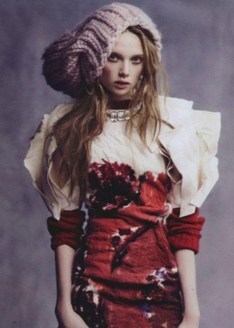 Böyle bir şapka öncelikle şık bir aksesuar olduğundan, hemen hemen her kıyafetle giyilebilir. Yırtık kot pantolon, gergin kazaklar ve canlı tişörtü ile harika bir şekilde harmanlanır. Ayrıca bir kazak elbise, yelek veya hatta klasik bir ceket olabilir.
