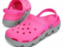 - Çiğdemler topuksuz hafif kare galoşlardır, yuvarlak kapalı bir burnu, kalın bir tabanı ve topuğu sabitlemek için vidalı bir kayışı vardır. Su üzerinde hareket için ayakkabı için en iyi seçenek bulunamıyor. Rahattırlar ve yürürken ayaklarından düşmezler. Bu, kumdaki veya sudaki açık hava oyunları sırasında bacaklarının korunması gereken çocuklar için mükemmel bir seçimdir.
