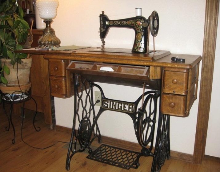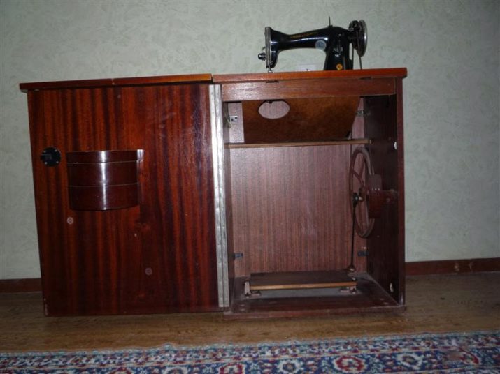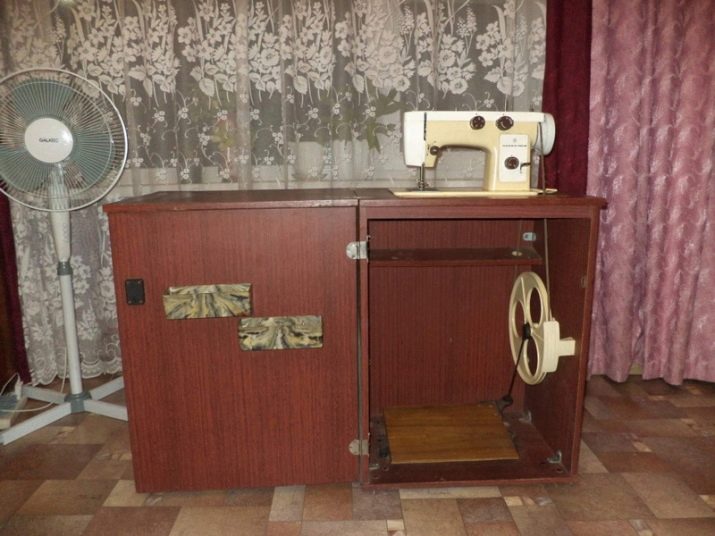 SSCB'de, ayak tahrikli makinelerin çeşitli versiyonları üretildi. Böyle bir model uygun bir odada, normal bir masa gibi kullanışlı olabilir. Ve bir şey dikmeniz gerekiyorsa, dolap kolayca ayrıştırılabilir. Ve ayrıca dikiş için ihtiyacınız olan her şeyi koyabilirsiniz.