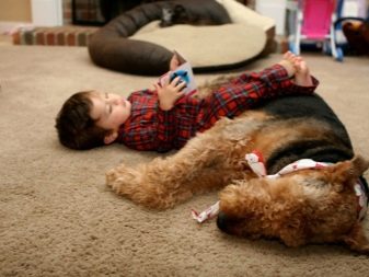 Bir köpeğin zihinsel yetenekleri büyük ölçüde çocuklarla etkileşim şekli ile değerlendirilir. Airedale, bir çocuk ve bir yetişkin arasındaki farkı anlar, çocukları sever ve sadece bir kötülükten değil, yanlış anlamadan bir evcil hayvana rahatsızlık verebilecekleri gerçeği göz önüne alındığında, onlara biraz daha izin vermeye hazırdır. Aynı zamanda, deneyimli sahipler çocukları hayvanla yalnız bırakmamalarını tavsiye ediyorlar, ancak nedeni saldırganlıkta değil - sadece büyük ve oldukça aktif bir köpek yanlışlıkla küçük bir adamı itebilir ve düşecektir.